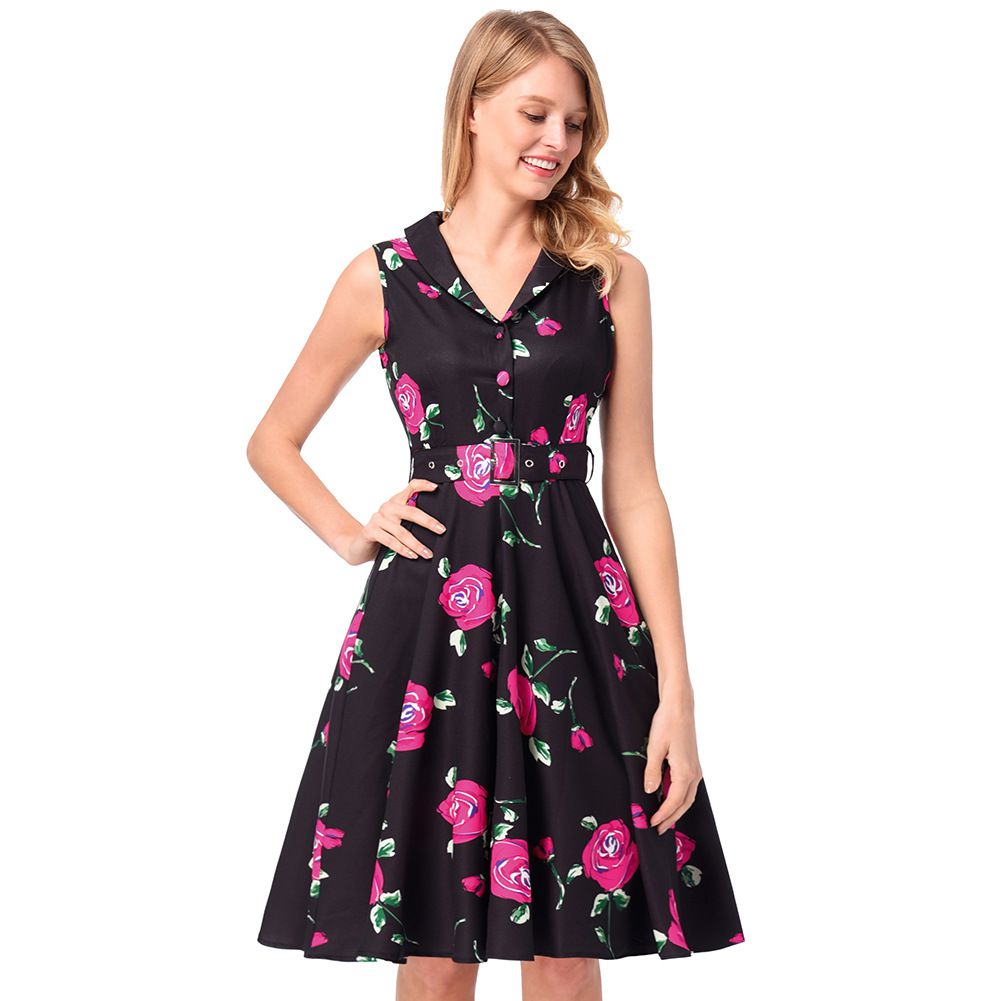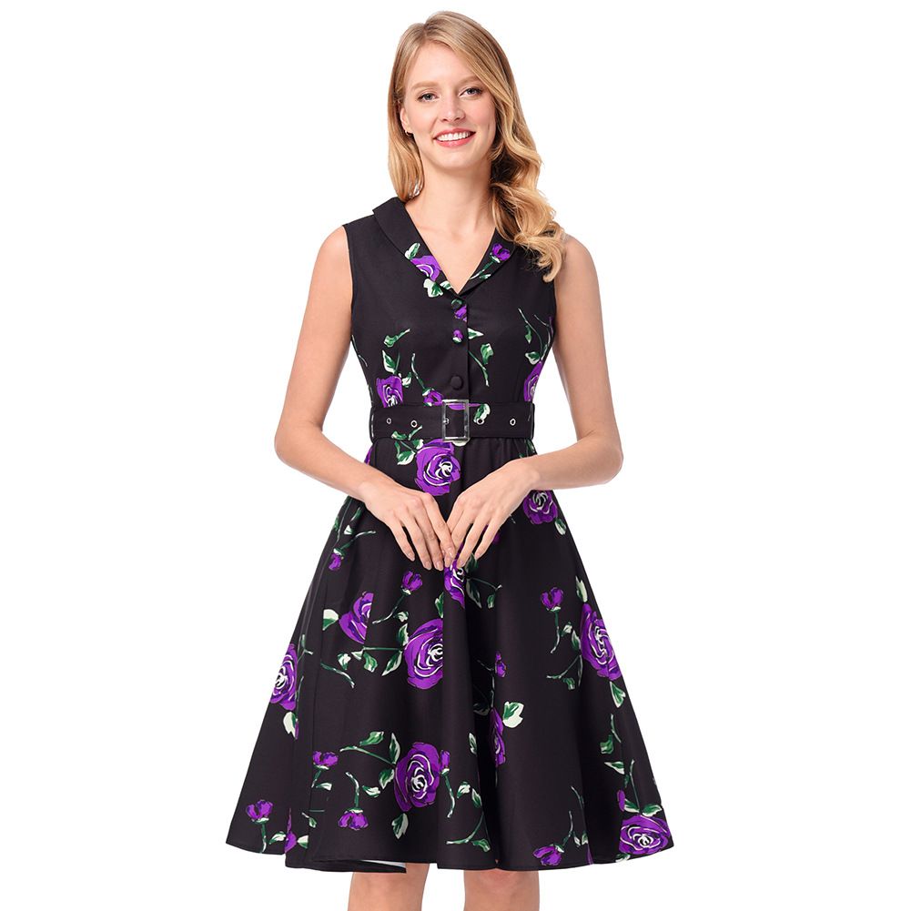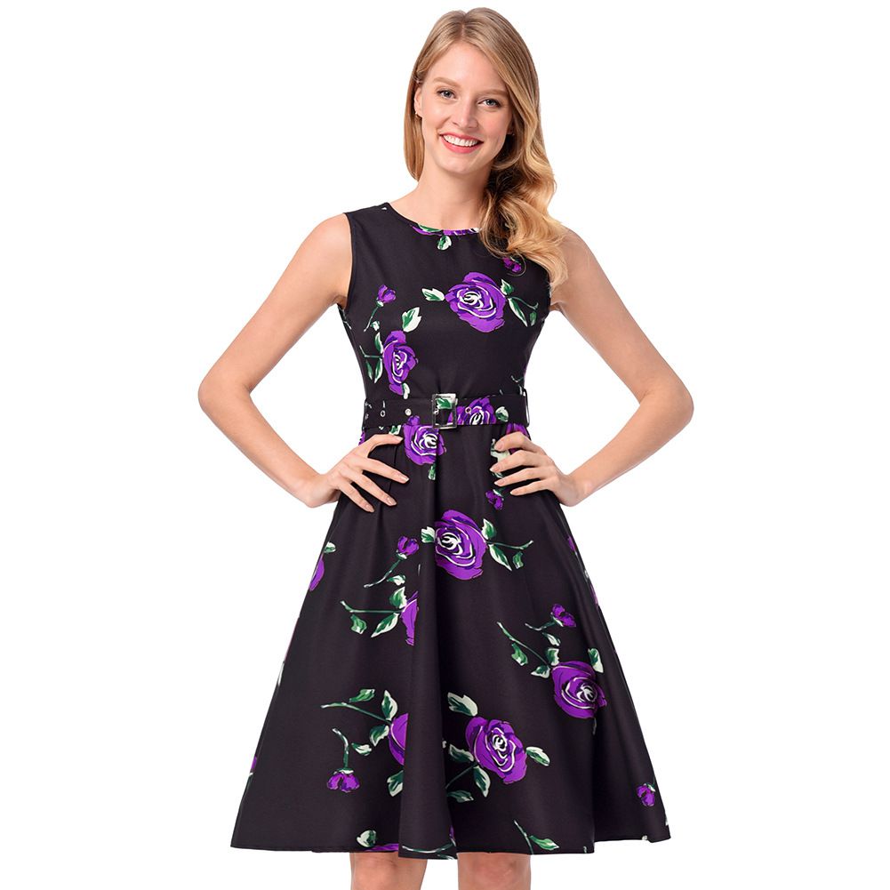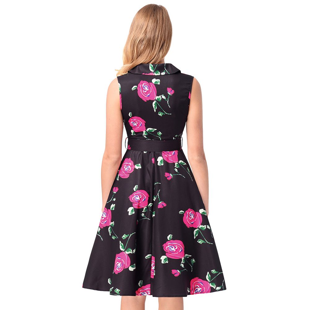 2025 spring and summer retro Hepburn style single-breasted with belt print dress