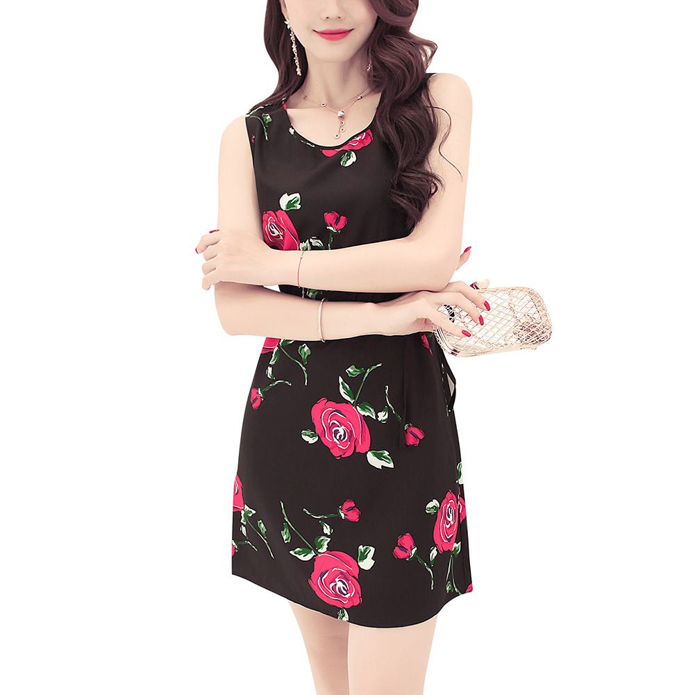 2025 Summer New Rose Print Tank Dress