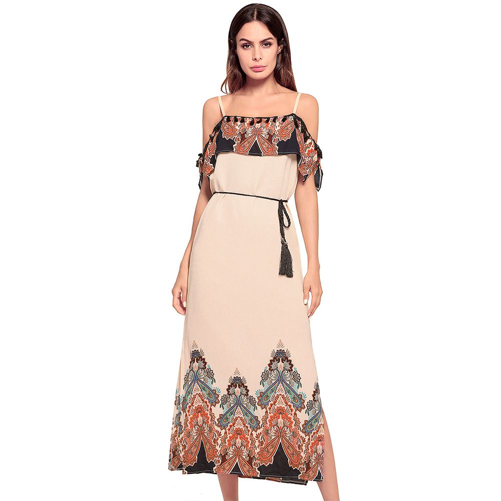 2025 Summer Women's Bohemian Dresses Backless Vacation Beach Dresses