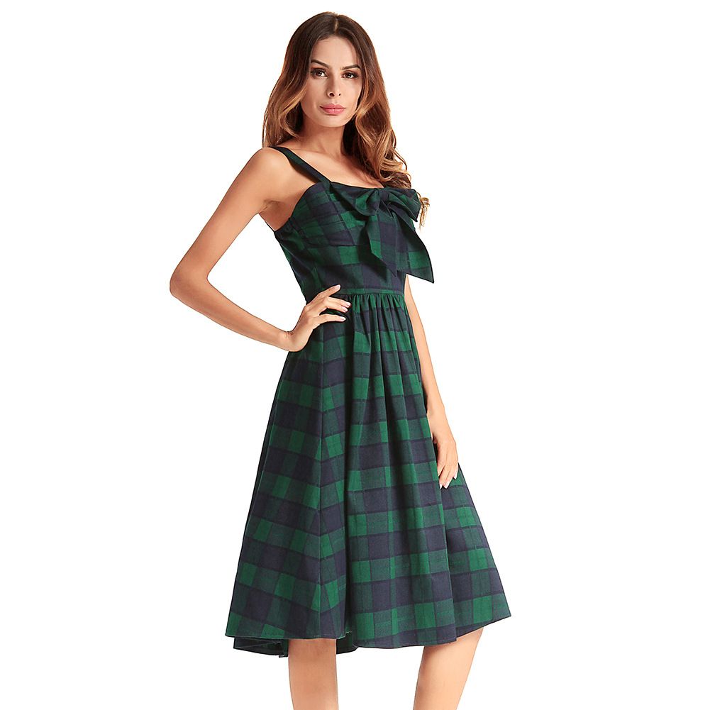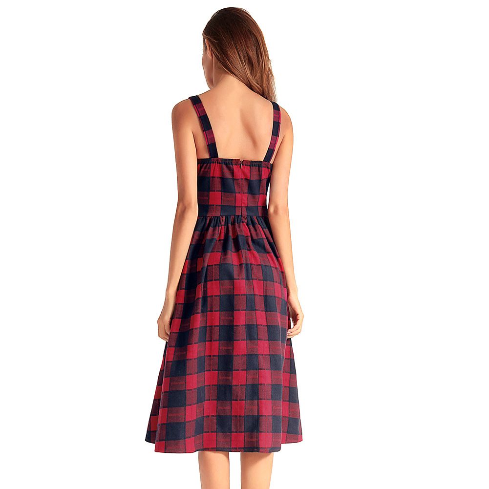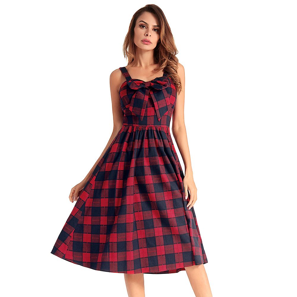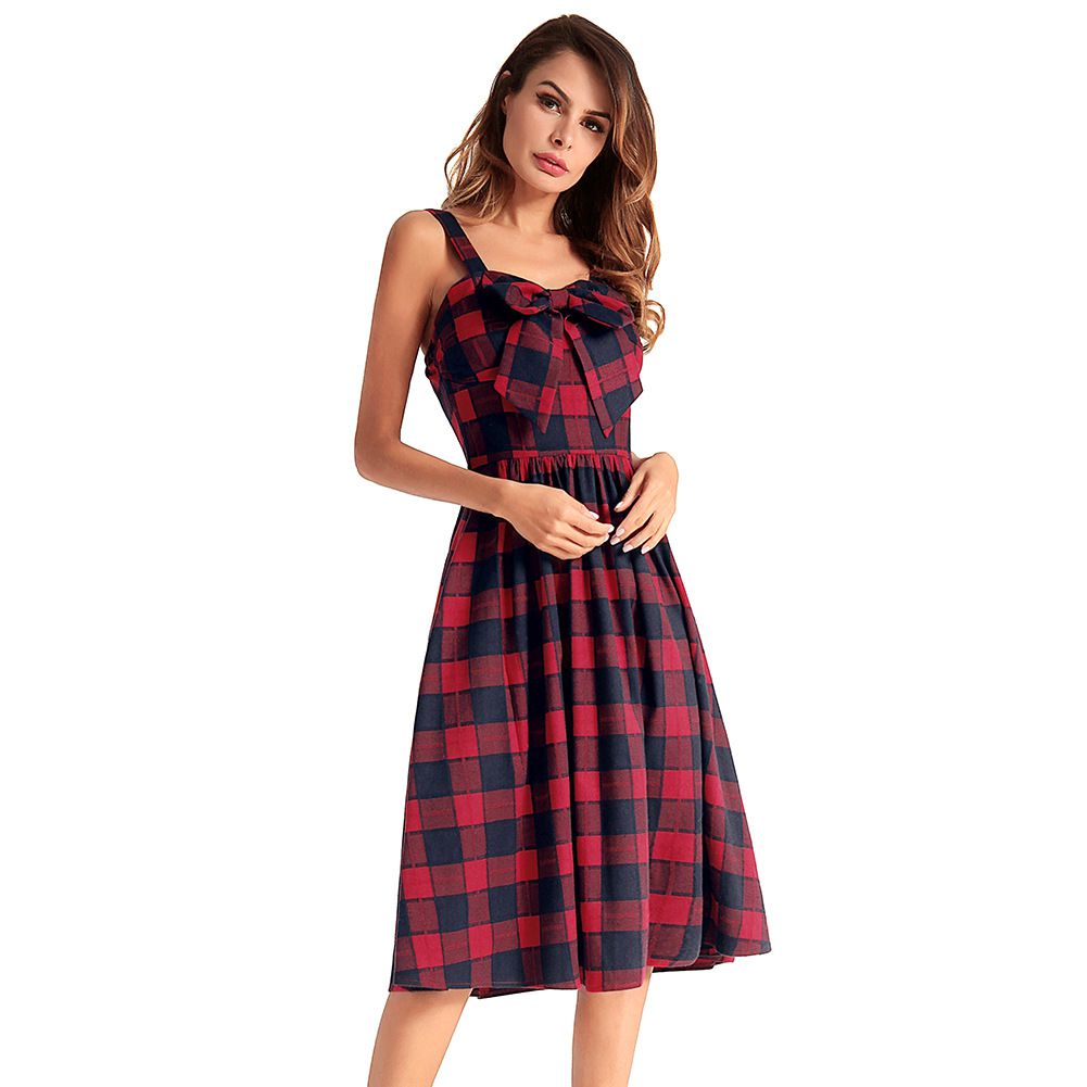 2025 summer new women Hepburn big swing dress tube top plaid strap dress