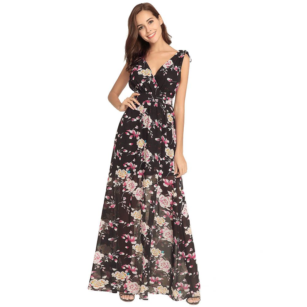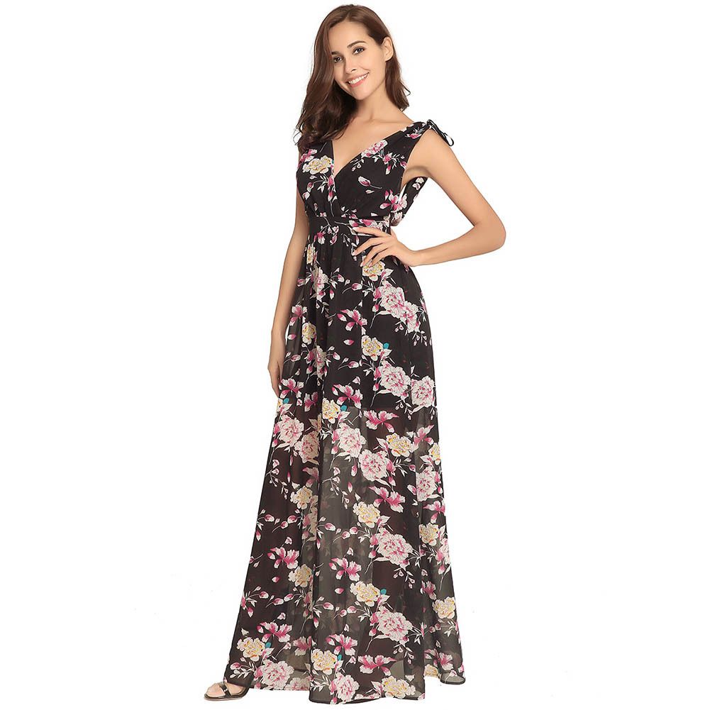 Summer new women's dress Simple contrast color loose short sleeve long dress