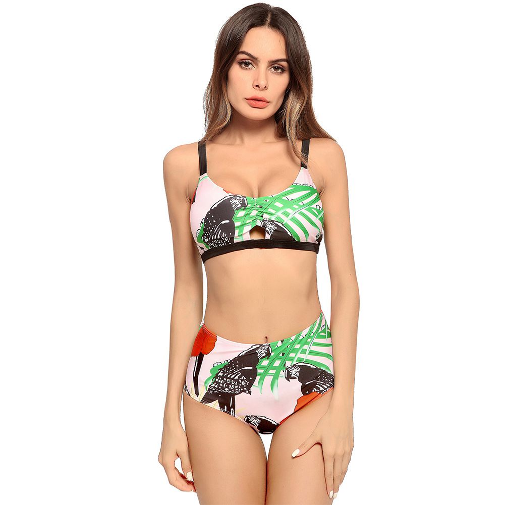 2025 new bikini swimsuit, hanging neck camouflage tassel print sexy swimsuit