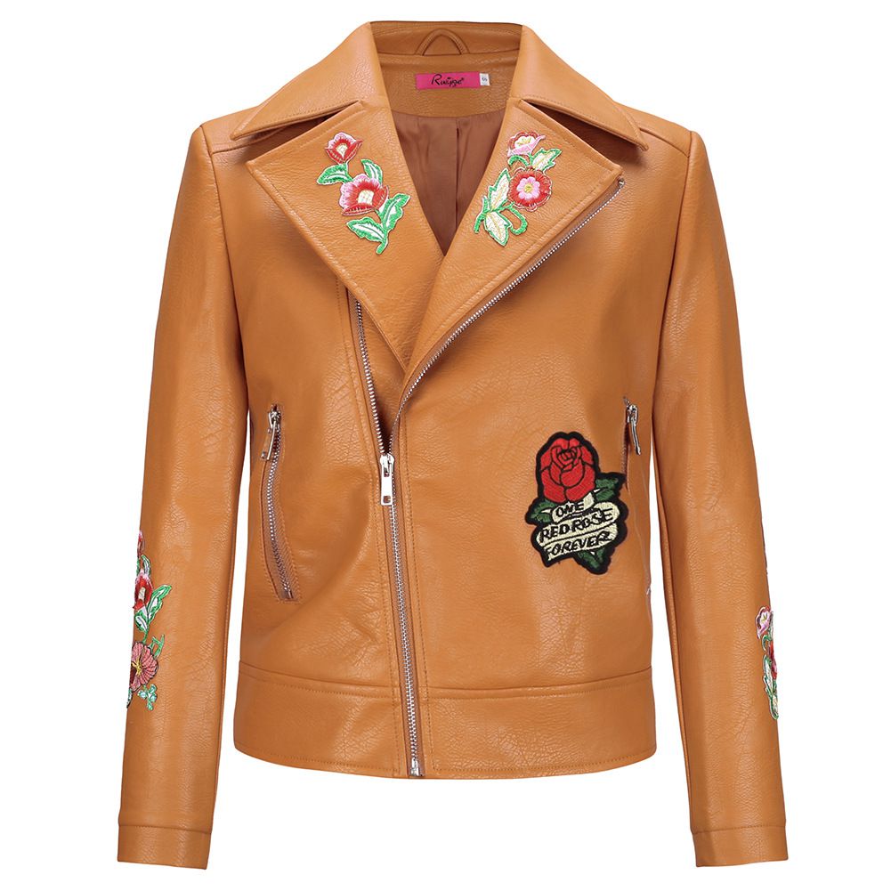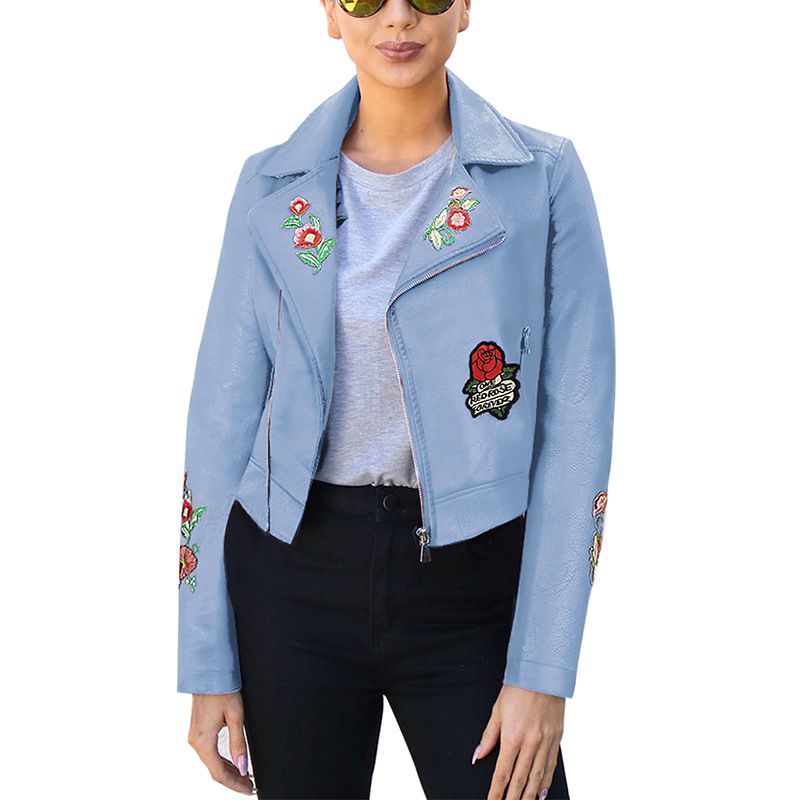 2025 autumn new embroidered jacket zipper motorcycle short leather jacket
