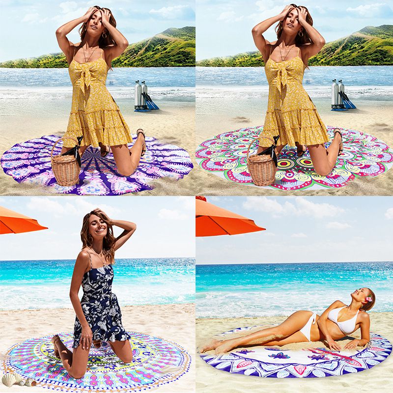 2025 cross-border new style round beach towel vacation sun shawl wrap skirt yoga mat