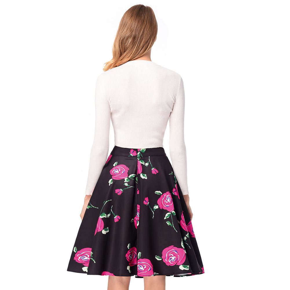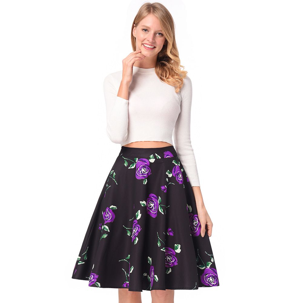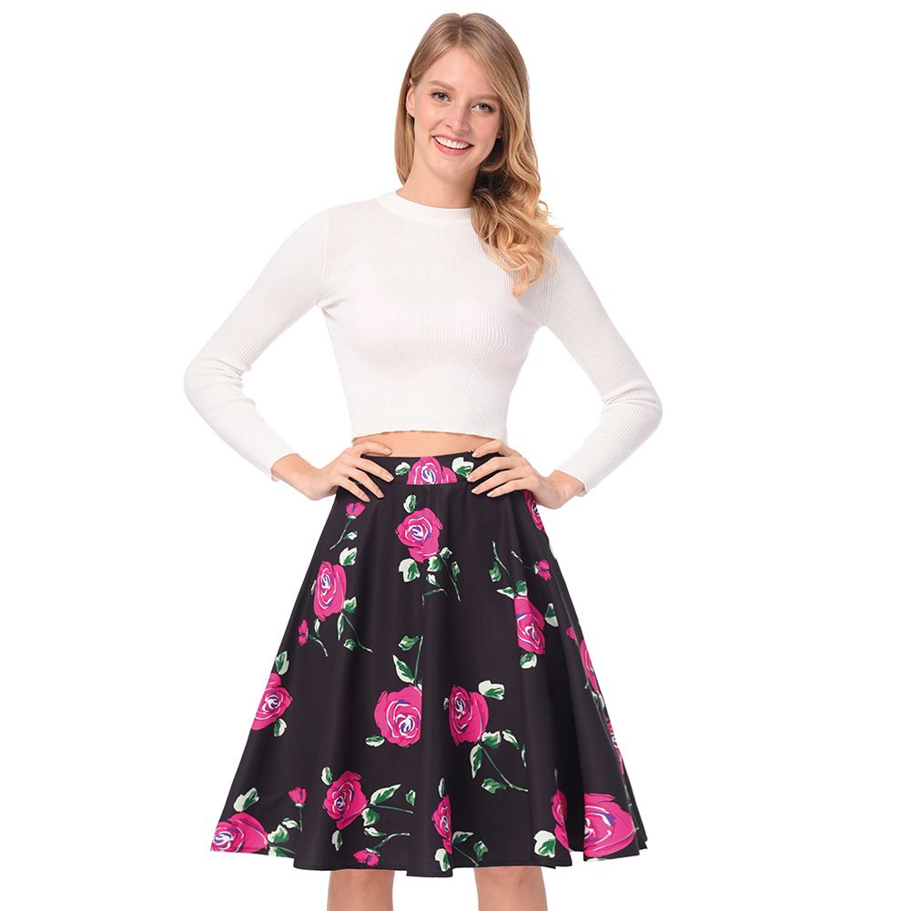 2025 spring and summer new retro a word skirt high waist rose print skirt