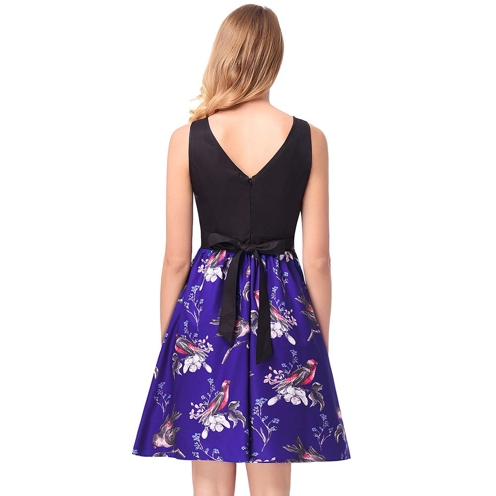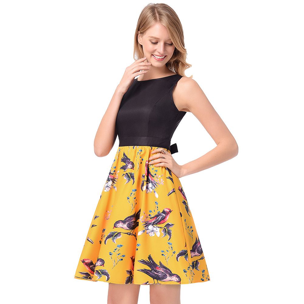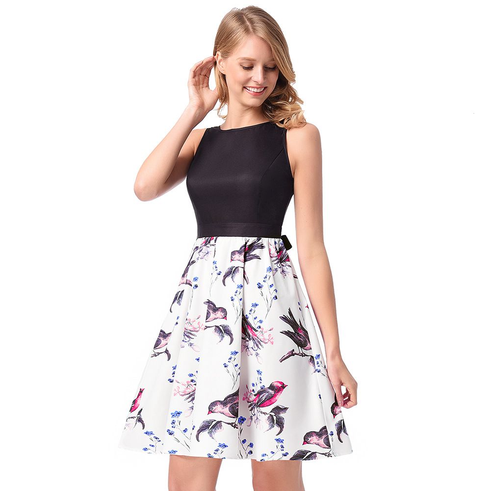 2025 spring and summer print sleeveless new dress with a waist and a large skirt