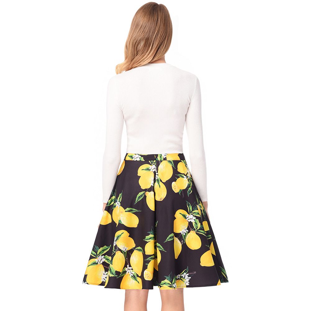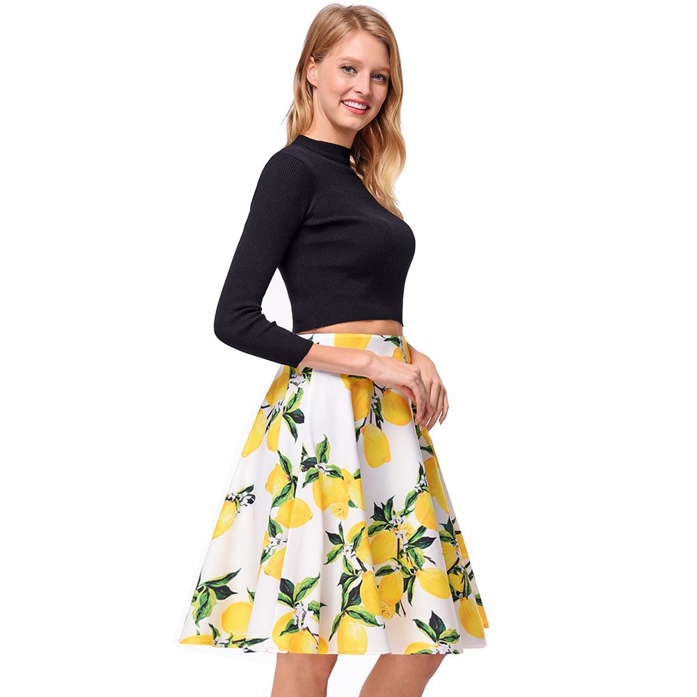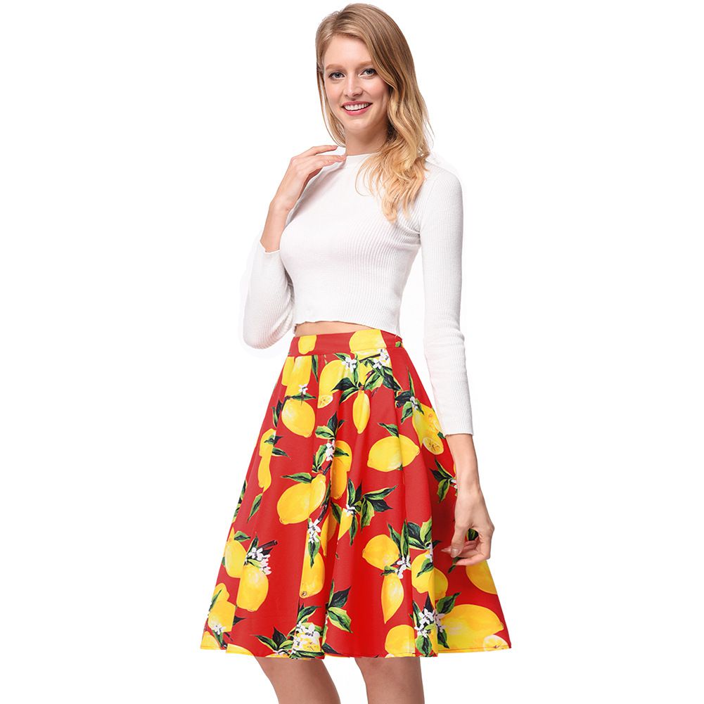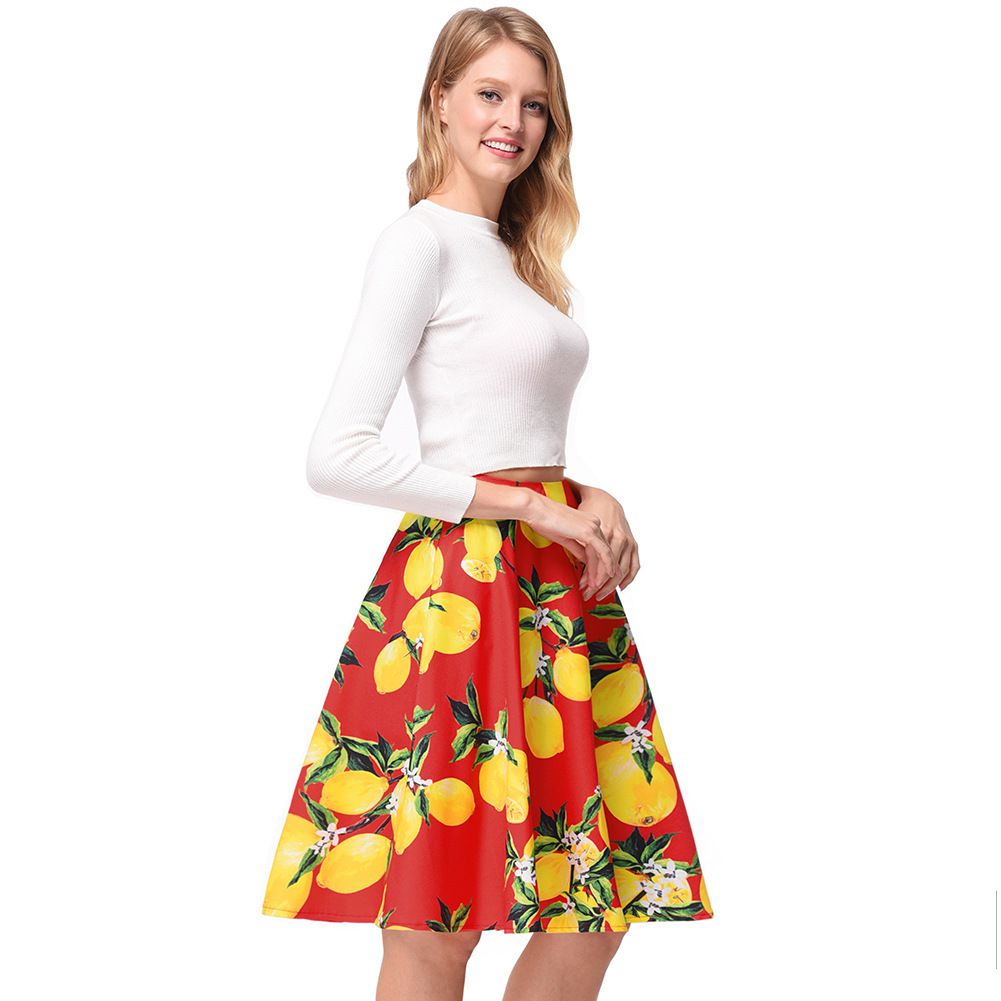 Retro printed skirt 2025 new spring and summer wild pleated skirt