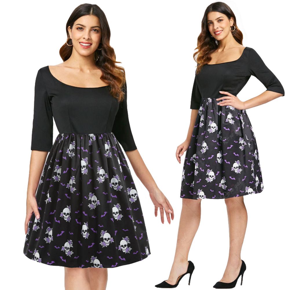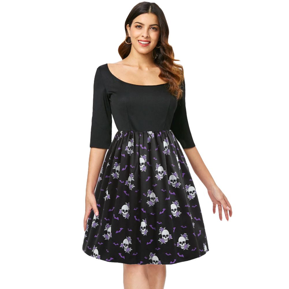 2025 autumn and winter new Halloween sleeves skull print dress skirt dress female