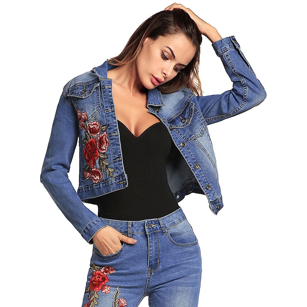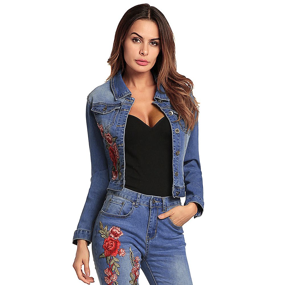 2025 spring new long-sleeved versatile short jacket embroidered denim jacket