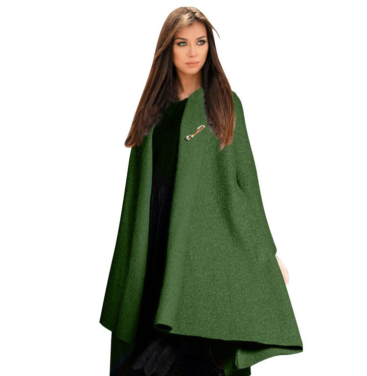 2025 solid color wool coat cardigan long paragraph large size loose coat